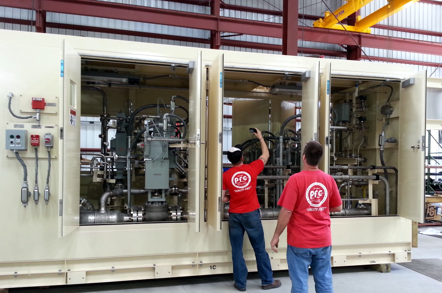 PFC fabricates custom accessory skids for power generation companies and industrial processes. Precision manufacturing facilities have all of the required qualified personnel, specialized equipment, material control, cranes, and conditioned workspaces to ensure that these skids meet customer requirements, US & European specifications, and that product integrity is preserved.